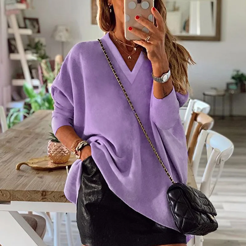 Best Offer Taniafa 2019 New Arrival Fashion Women V Neck Pure Color Pullover T Shirts Autumn Casual Loose Tops