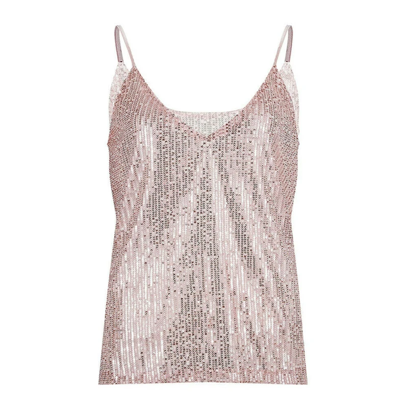 New Women Sparkly Sequins Tanks Camis Sexy Clubwear Tops Strappy V Neck Loose Tank Vest Lady Girl Casual Camisole Plus Size Clothing