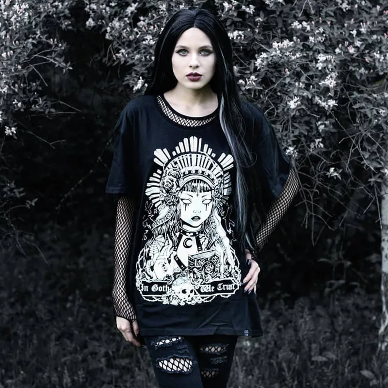 Get this 2020 Goth Dark GOTHIC Black Print T-shirts Gothic Loose Punk Harajuku Streetwear Summer T-shirt Female Fashion Aesthetic T shirt with limited time discount by pressing the button below