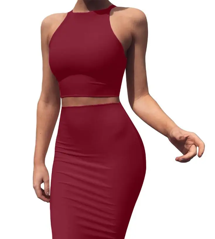 Promo 2020 knee University Solid Color Crop Top and Skirt Two Pieces Dress Set Yellow Club Summer Outfit Sexy Clothes for Women