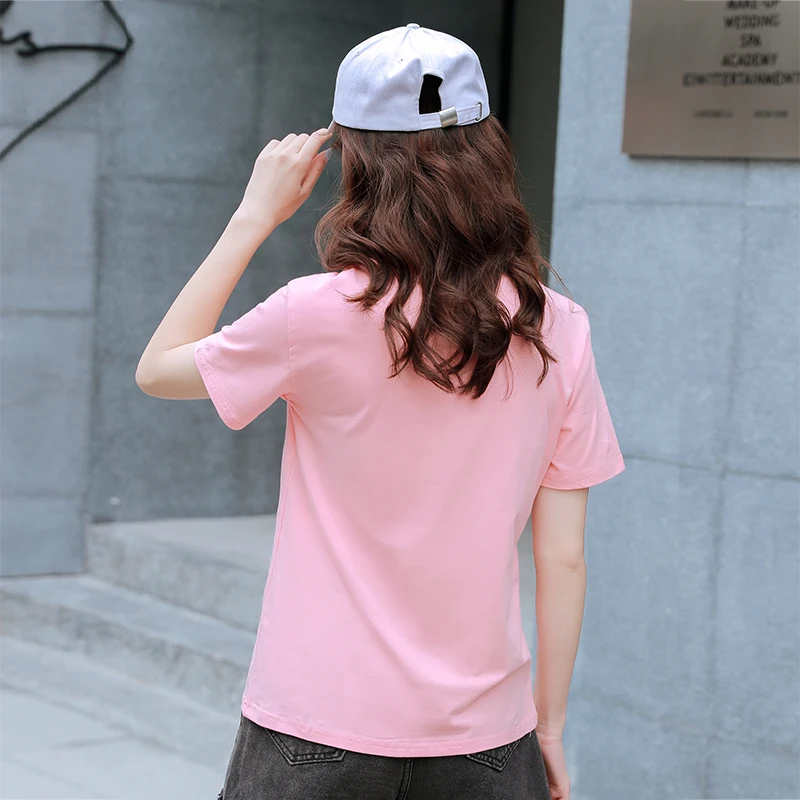 New Cotton Fashion Letter Graphic Print Tee Women Loose Cec T Shirt For Woman Cute Kawaii Pink Aesthetic Tshirt Girl Top Female 2020
