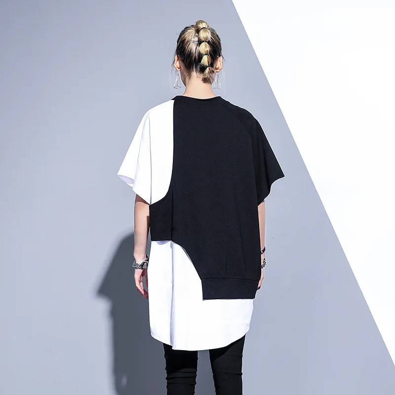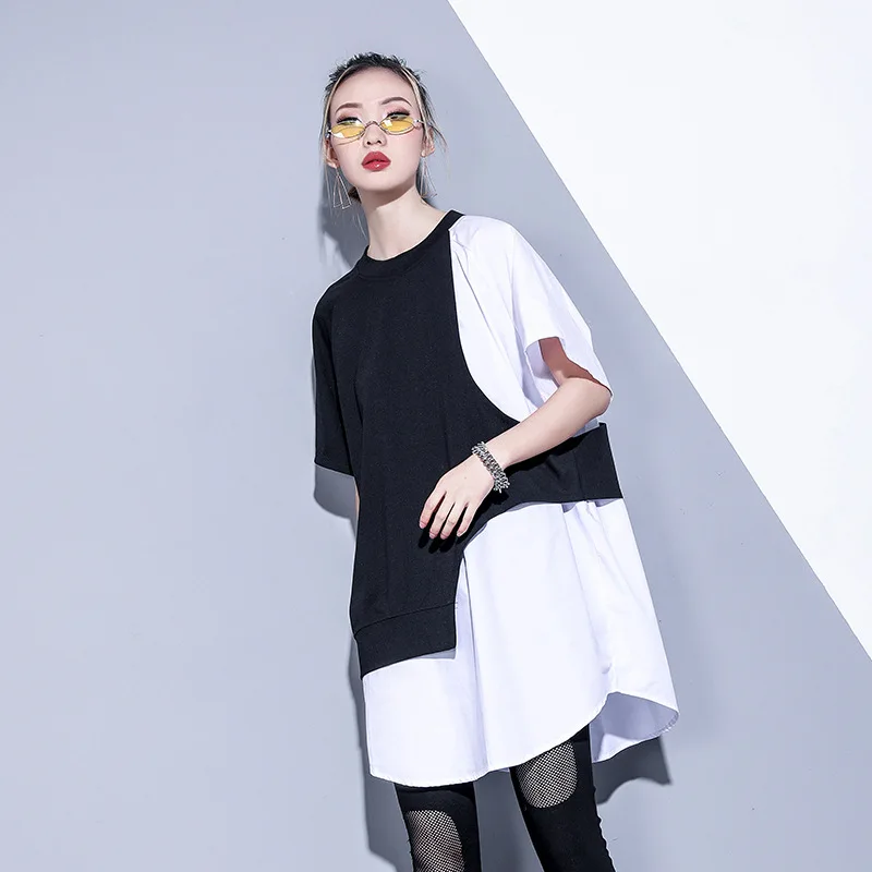 Sale 2020 Harajuku Tide Top Qualiy Women Loose Fit Spliced Irregular Oversize Tshirt Long Short Sleeve Basic Tee Spring Autumn Summer