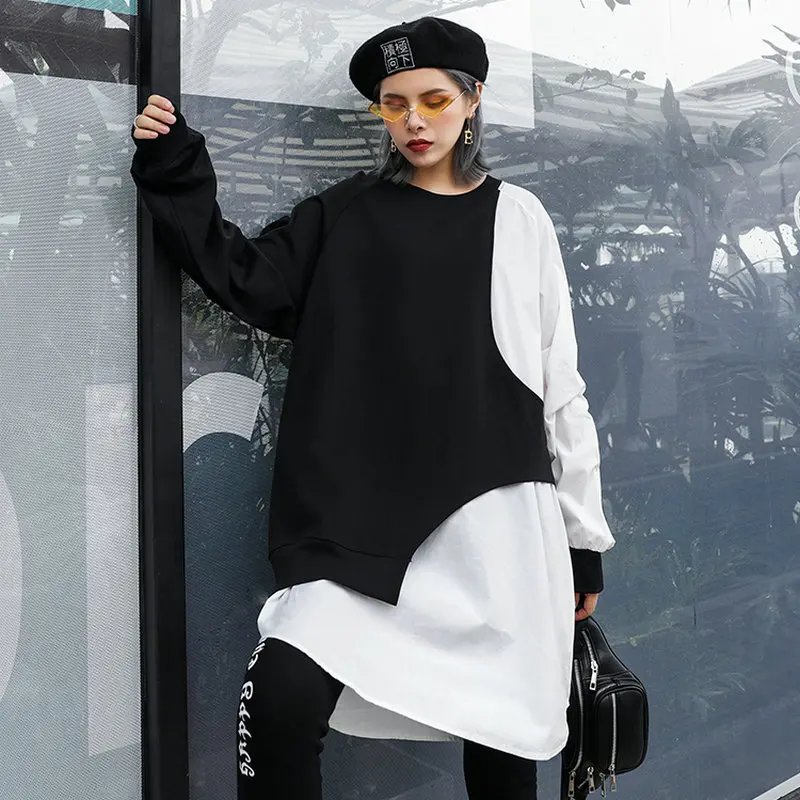 Get this 2020 Harajuku Tide Top Qualiy Women Loose Fit Spliced Irregular Oversize Tshirt Long Short Sleeve Basic Tee Spring Autumn Summer with limited time discount by pressing the button below