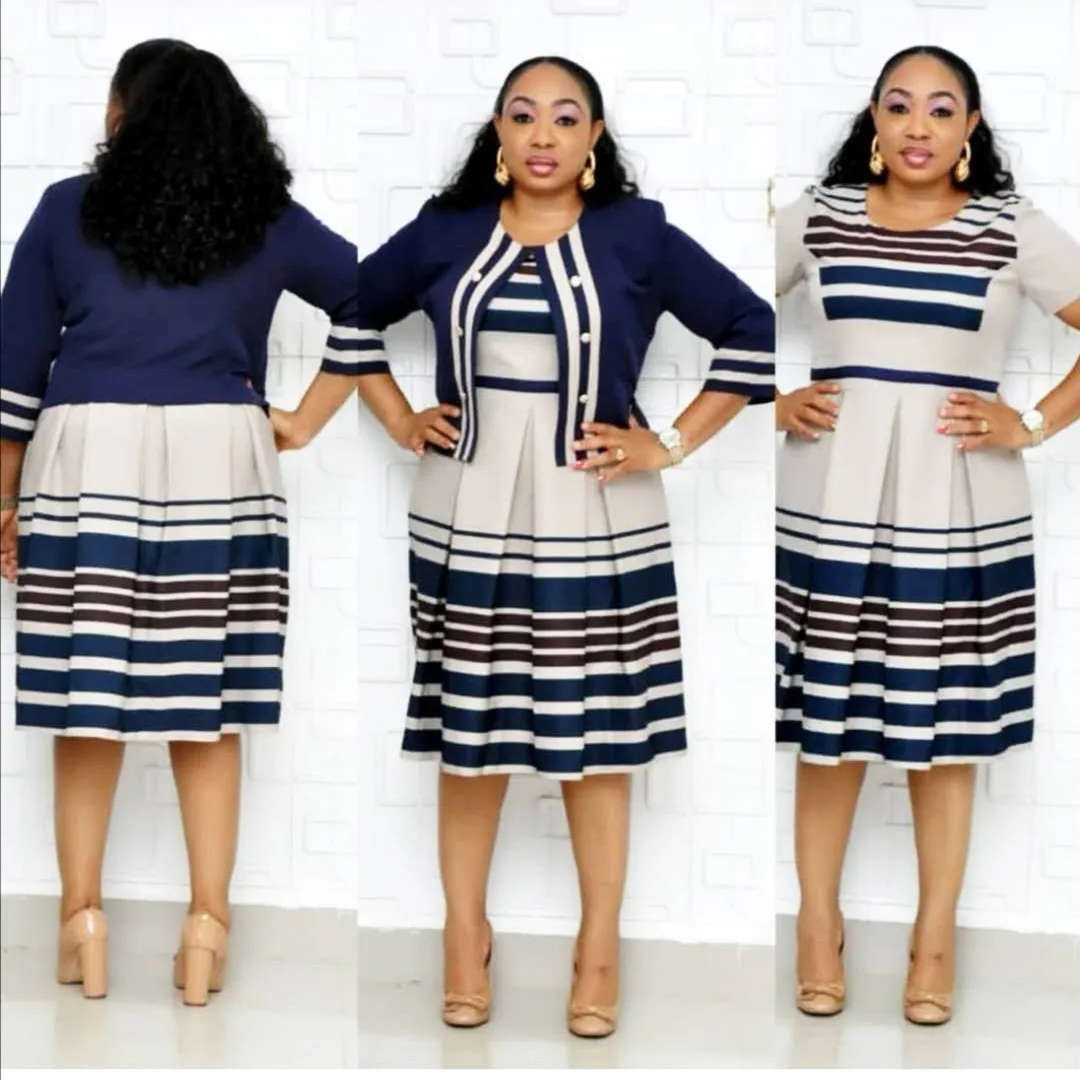 Sale Women Plus Size XL-5XL Two Piece Set Female Spring Summer Short Sleeve Dress and Half Sleeve Tops Elegant 2piece Set Outfits