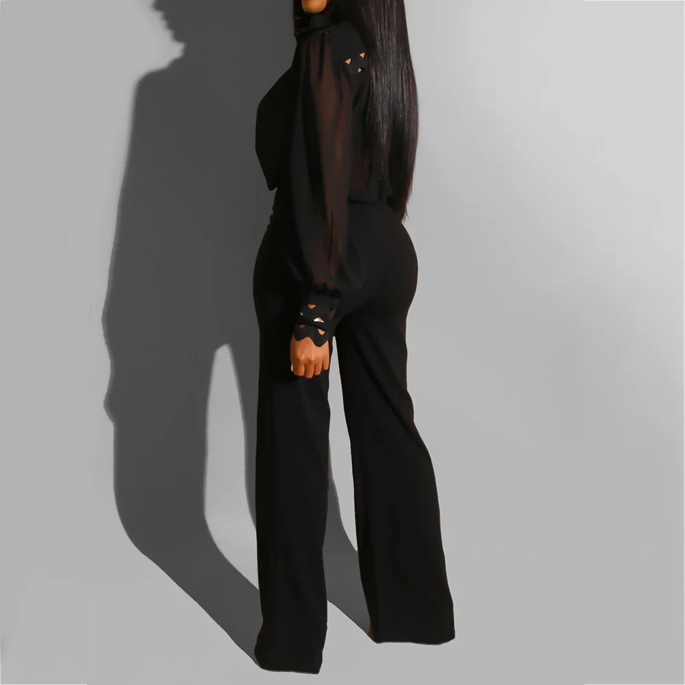 Best Offer Autumn Winter Long Sleeve White Jumpsuit Elegant Lady Hollow out African Party Long Jumpsuit Wide Leg Office Wear Playsuit 2019