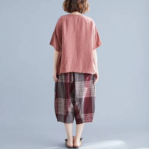New 2019 Spring Autumer Fat Literature Art Large Size Women Open Fork Top Loose Seven Cent Pants New Style Female Two Piece Clothes