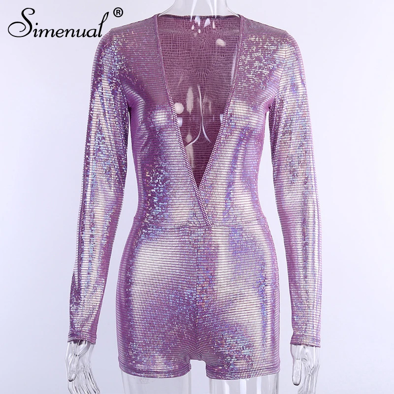 Buy Simenual Sequin Deep V Neck Clubwear Women Rompers Long Sleeve Sexy Hot Fashion Glitter Party Playsuits Skinny Slim Female 2019