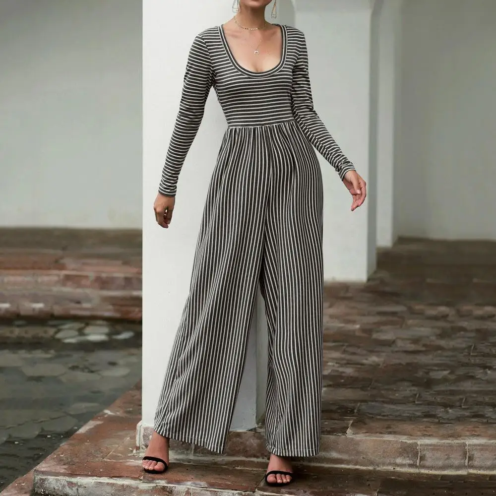 Get this Striped Rompers Womens Jumpsuit Long Sleeve U-Neck Hight Waist Wide Leg Playsuit Overalls Ropa Mujer 2020 Autumn Spring New Hot with limited time discount by pressing the button below