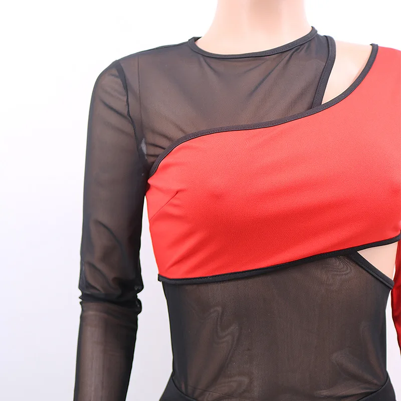 Promo 2 Piece Joggers Tracksuit Long Sleeve Mesh Hollow Out Bandage Bodysuit+Pencil Pants Matching Sets Jogging Femme Plus Size S-XXL