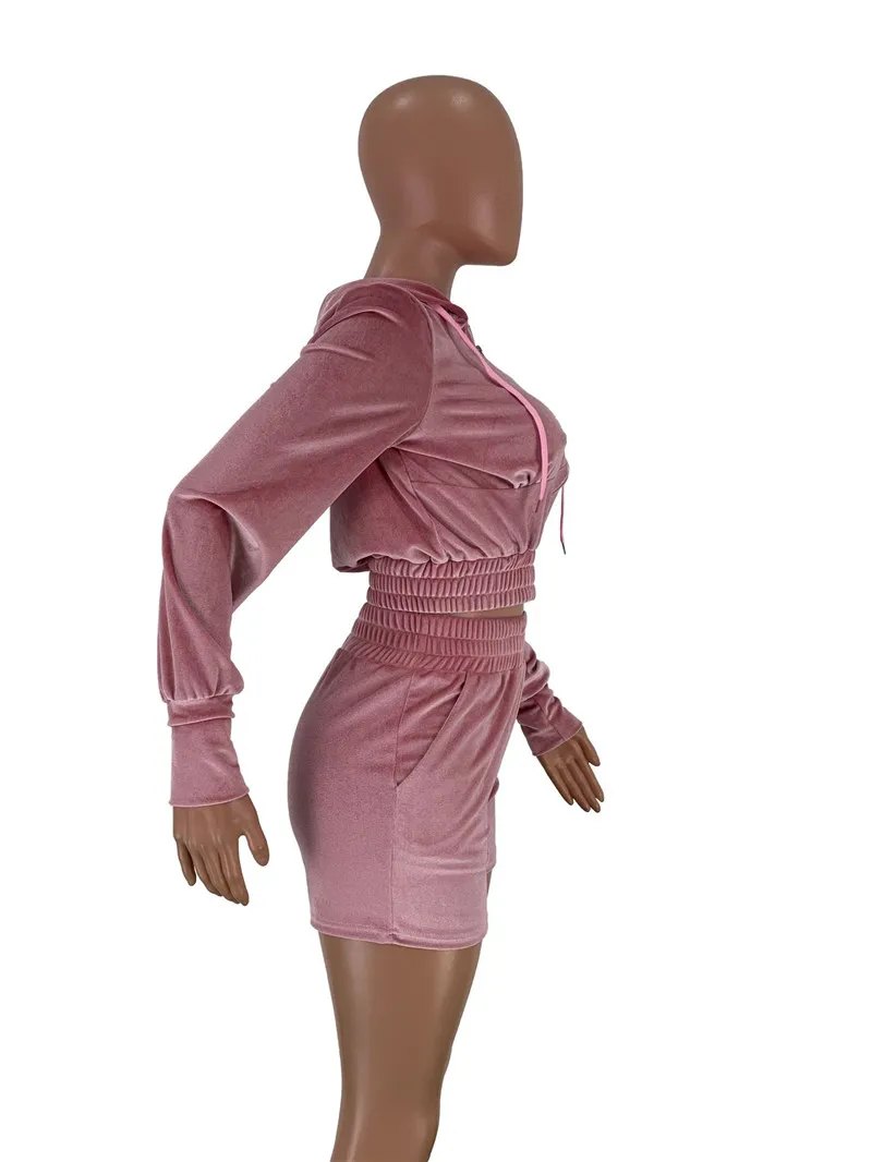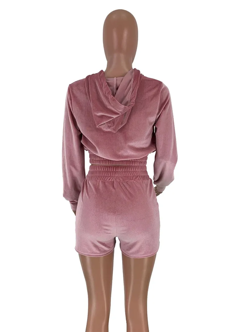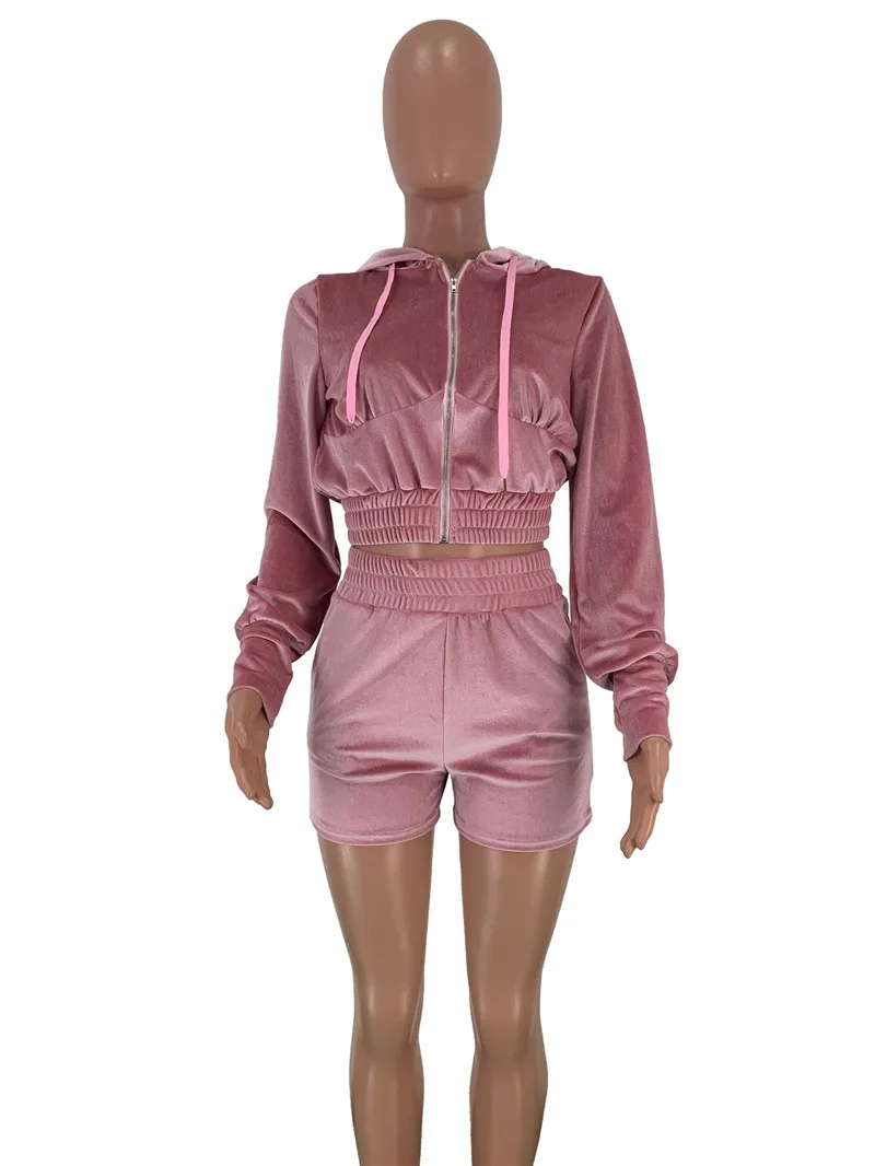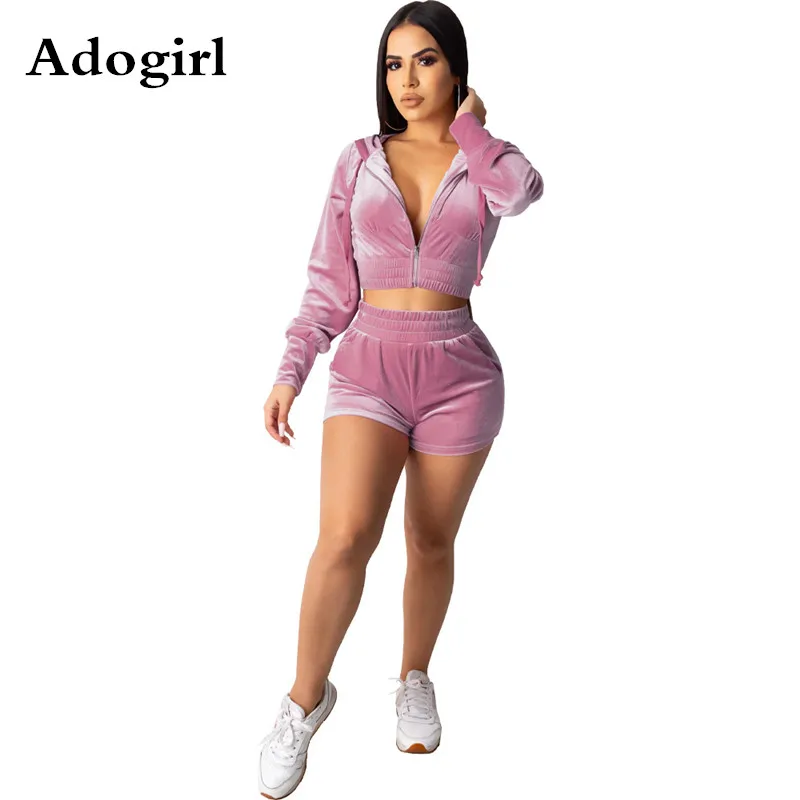 Promo 2020 New Velvet Women Two Pieces Set Hooded Long Sleeve Zipper Short Jacket + Pants Tracksuit Sports Fitness Outfits