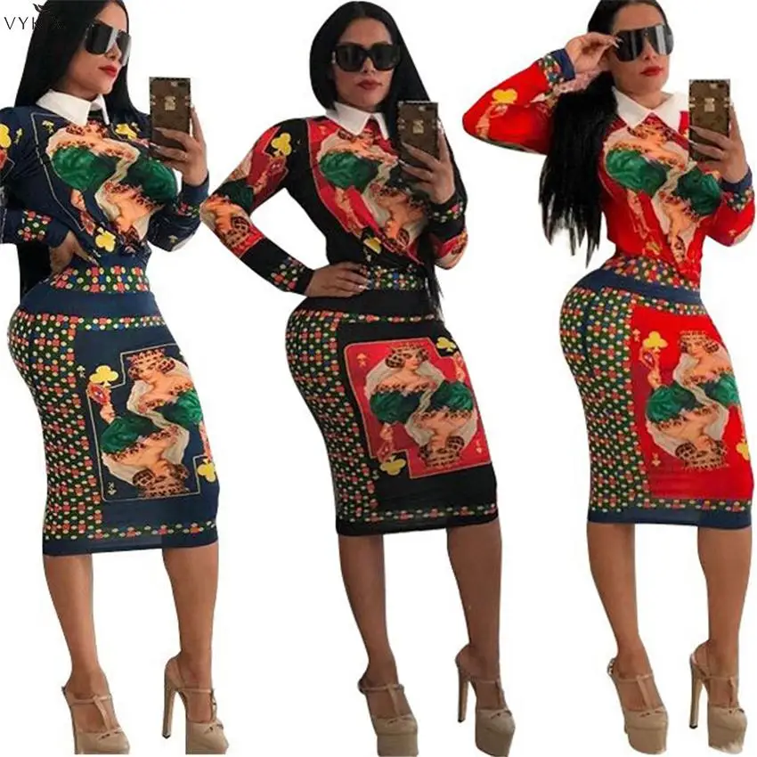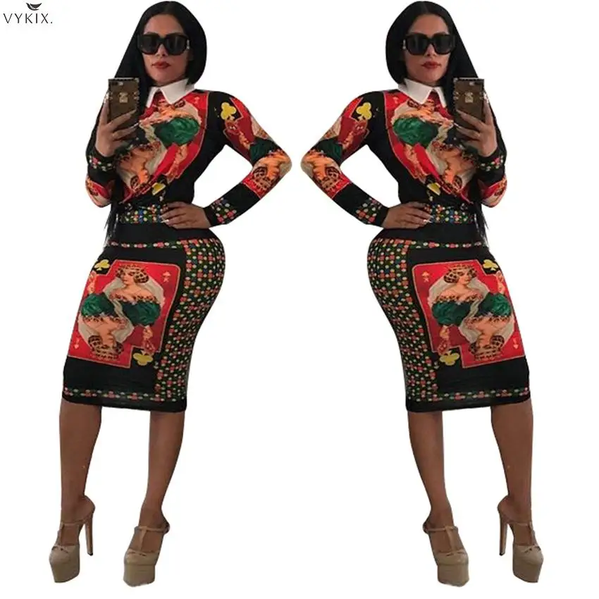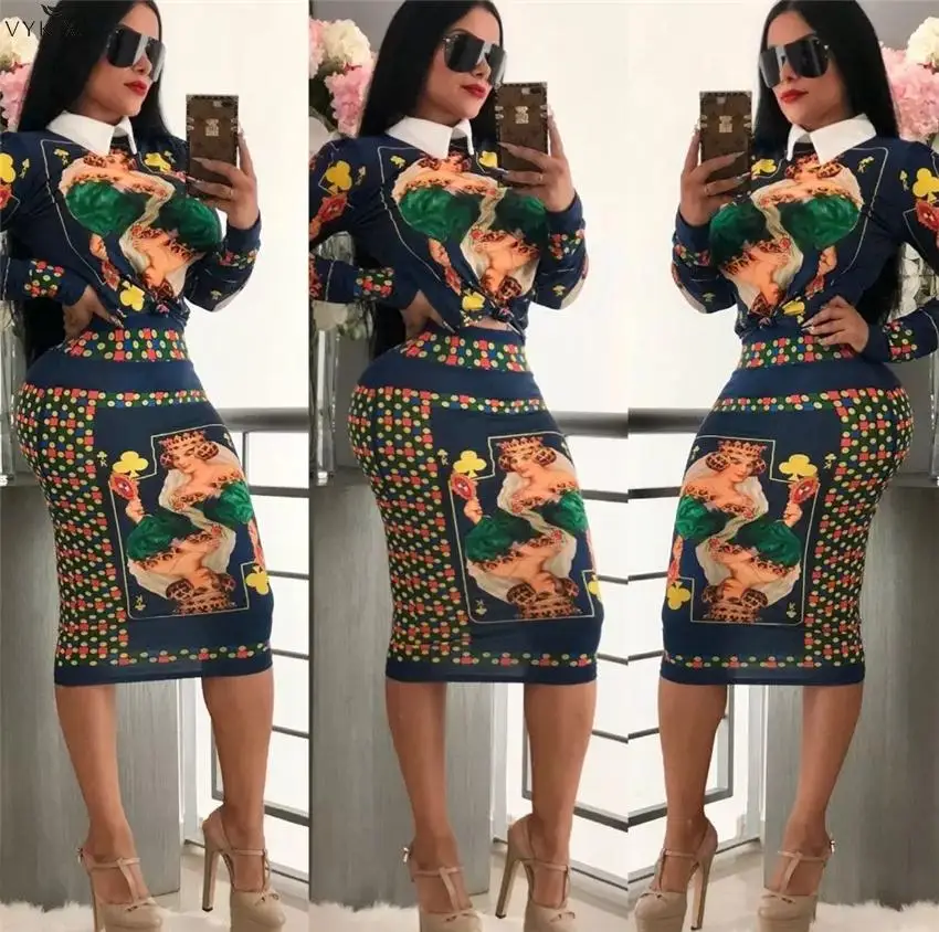 New Women Set Runway Long Sleeve Shirt Two Piece Skirt Set Club Outfits 2 Two Piece Set Women Outifts Vestidos Clubwear Skirt Set
