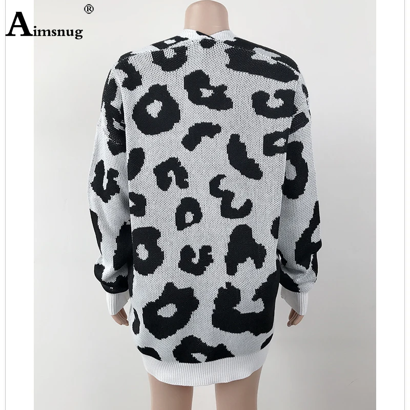 Promo Aimsnug Long Leopard Cardigan Sweaters Women Long Sleeve Autumn Winter Tunic Outerwear Female Casual Loose Sweater Long Coat