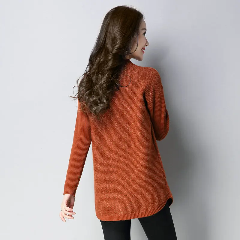 Best Offer Woman Autumn Winter Pullover Sweater Black Khaki Black Burgundy Shining Line Knitted Tops Crew Collar Knitwear With Pockets 2019