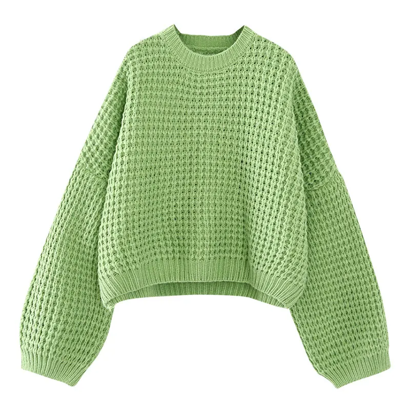 Buy casual knitted sweater and pullovers lantern sleeved solid lady elegant loose short pulls fashion outwear coat tops