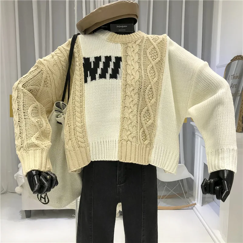 Get this Loose Knitted Sweaters for Women Casual Patchwork O-Neck Jersey De Mujer Invierno Winter 2019 Womans Sweaters New Arrival with limited time discount by pressing the button below