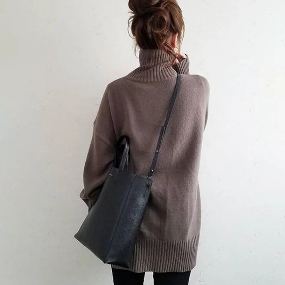 Buy Turtleneck Knitted Sweater Women Spring Autumn High Neck Plain Korean Office Ladies Basic Jumpers Sweet Knit Wear Tops Pullovers