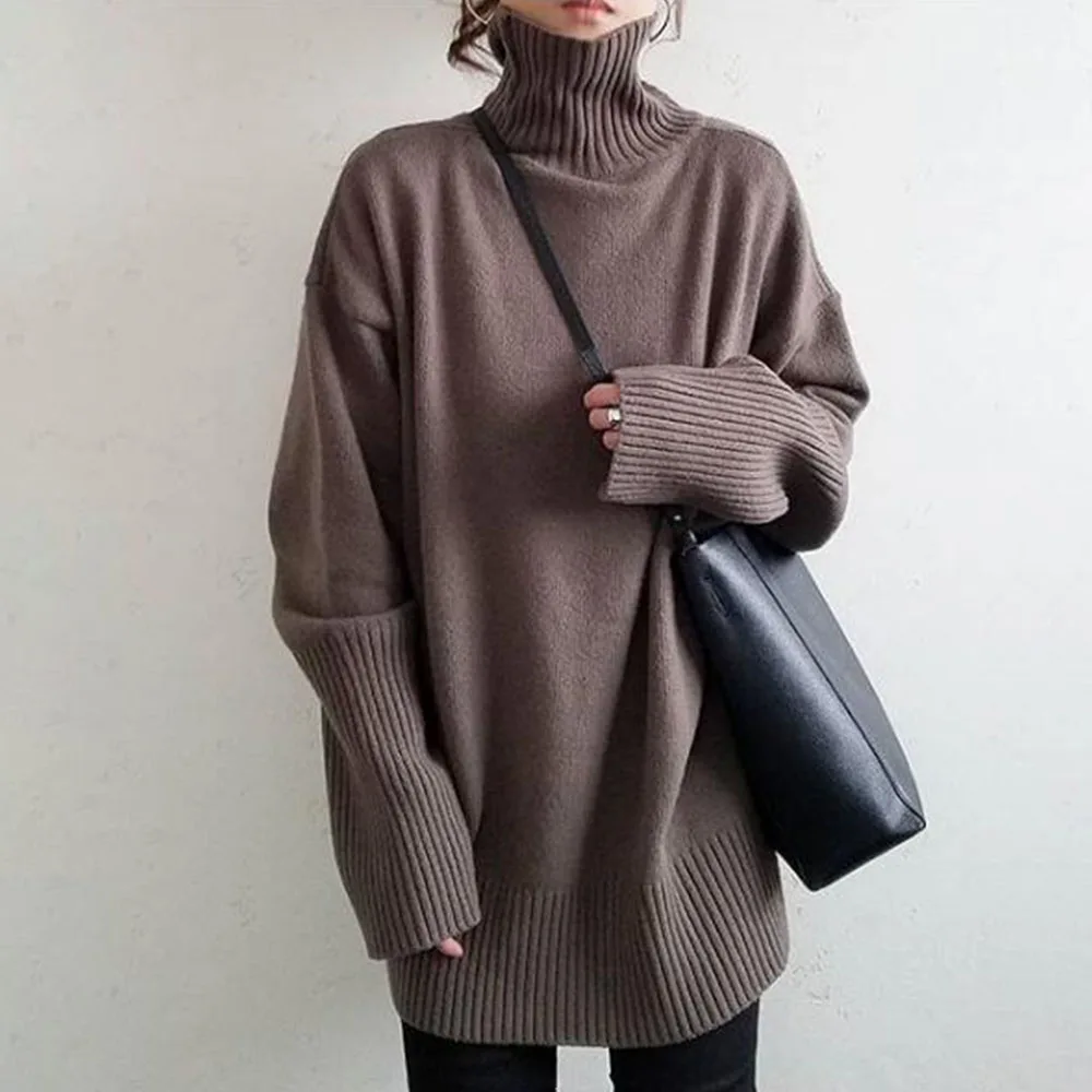 Promo Turtleneck Knitted Sweater Women Spring Autumn High Neck Plain Korean Office Ladies Basic Jumpers Sweet Knit Wear Tops Pullovers