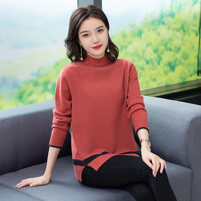 Promo Woman Elegant Pullover Sweater Turtleneck Textured Knitted Tops Blue Red Camel Black Plain Knitwear Pullover Sweaters Autumn