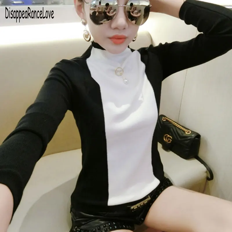Promo Patchwork Sweater Turtleneck Women Wool Blends Sweater Woman Pullover Sweaters Female Patchwork Women Cashmere Sweaters Fashion