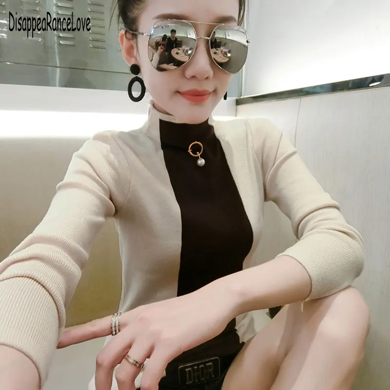 New Patchwork Sweater Turtleneck Women Wool Blends Sweater Woman Pullover Sweaters Female Patchwork Women Cashmere Sweaters Fashion