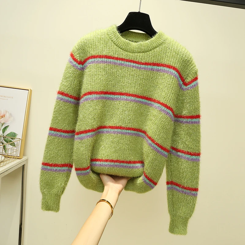 Promo Women Stripe Long Sleeve Thick Winter Sweaters Ladies O-Neck Loose Pullover Casual Thicken knit Jumpers Female Autumn Soft Tops