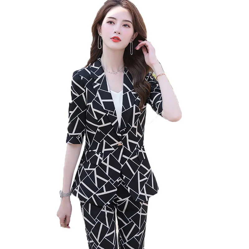 Promo 2020 Black White Mixed Color Female Formal Elegant Women Office Pant Suits Business OL Blazer Suit Jackets Trouser 2 Pieces Set