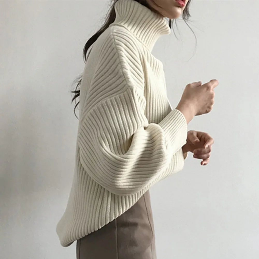 Promo Fall Winter Ladies Turtleneck Sweater Turtleneck Korean Solid Warm Jumper Oversize Pullovers Women Lantern Long Sleeve Sweaters
