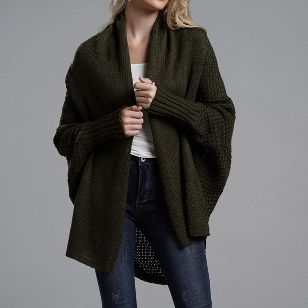 Sale Women Autumn Cardigan Sweater Batwing Sleeve Knitwear Jacket Solid Color Plus Size Cardigan Female Femme Jumper Coat 2019 New