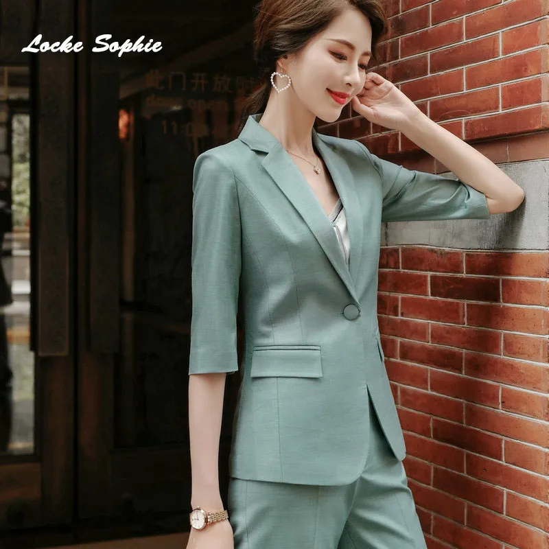 Promo Womens plus size Blazers coats 2020 Spring Cotton Middle sleeve Button Splicing Suits jackets ladies Skinny office Blazers Suits