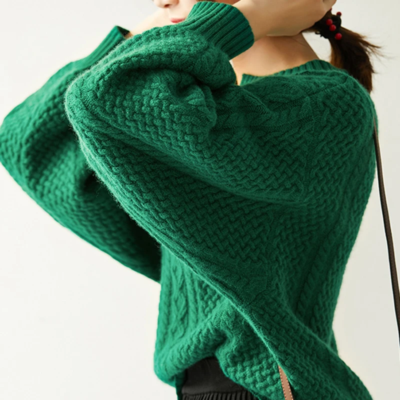 Best Offer New Arrival High Street Flat Knitted V-neck Full Regular Pullovers Lantern Sleeve None Solid NoneSweater Sweater Woman Boho