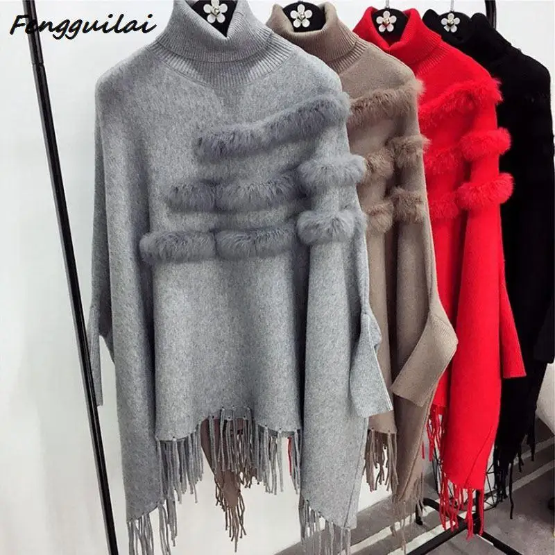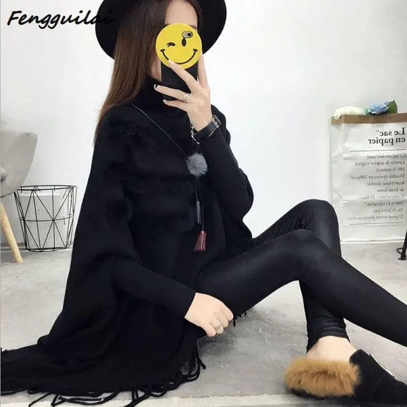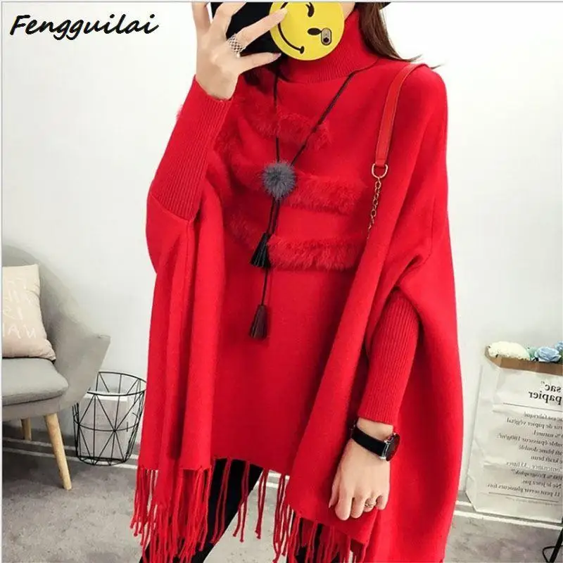 New New Spring Autumn Gray Pullovers Sweaters Loose Tassel Soft Shawl Poncho Women Slash Neck Bat Long Sleeve Pullover Sweater Shawl