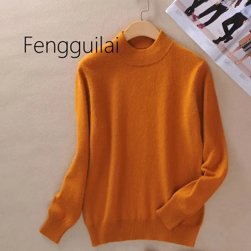 Best Offer Womens Cashmere Elastic Autumn Winter Half Turtleneck Sweaters and Pullovers Wool Sweater Slim Tight Bottoming Knitted Pullover