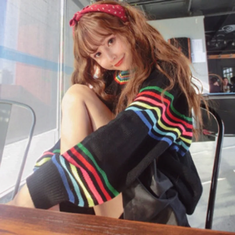 New Striped Sweater Women Autumn Loose Casual Sweater Warm Knitted Korean Version Tops Long Sleeve O-Neck Pullover Tops