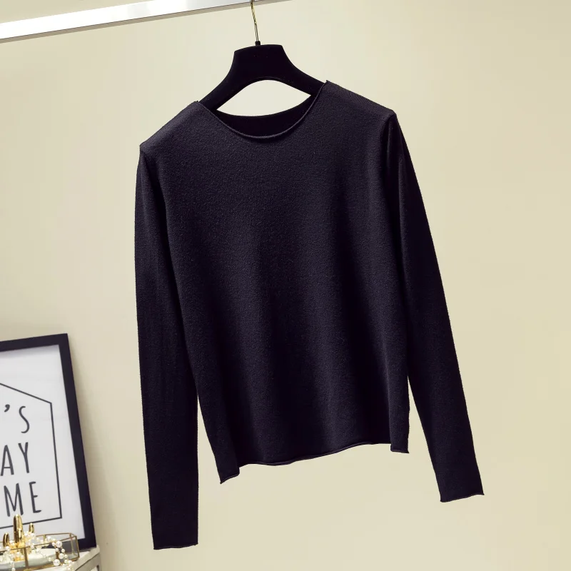 Get this Kintted Women Sweater Solid Color Long Sleeve Loose Jumpers Korean Fashion Autumn Spring Base Pullover Black White Apricot Blue with limited time discount by pressing the button below