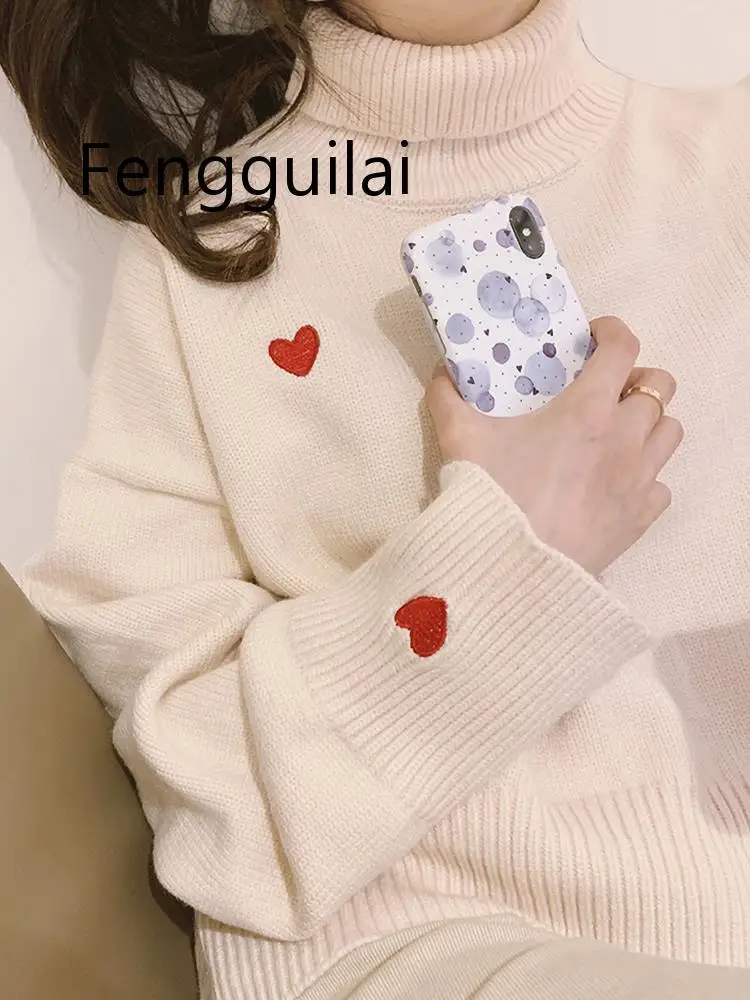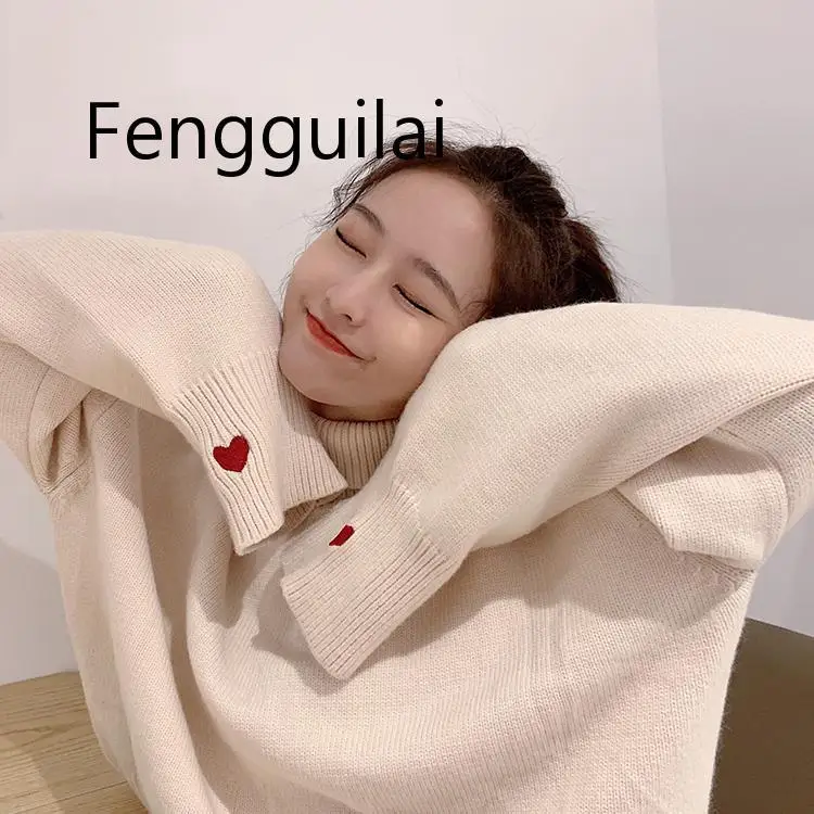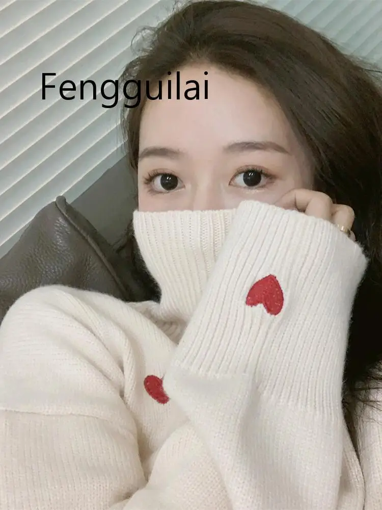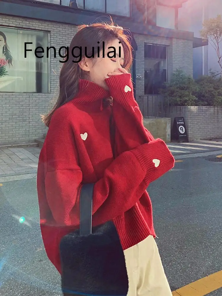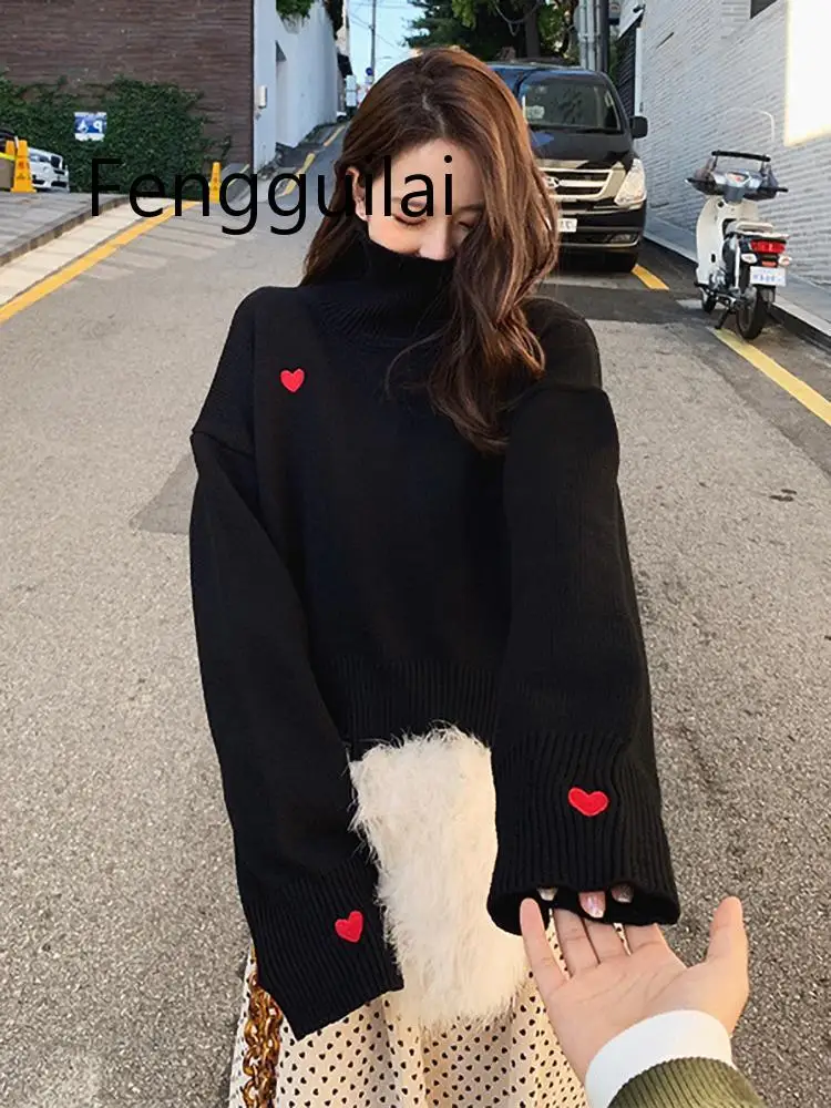 Sale Fall Winter Women's Turtleneck Sweater Loose Wild Sweater Slip Sweater Women's Long Sleeve Casual Sweater Women White Black Red
